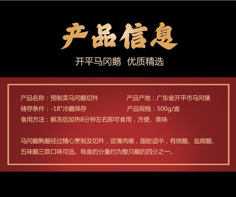 马冈优品五味鹅切件正宗马冈鹅名特优新农产品熟食鹅即食方便菜可火锅涮菜 马冈鹅切件烧鹅