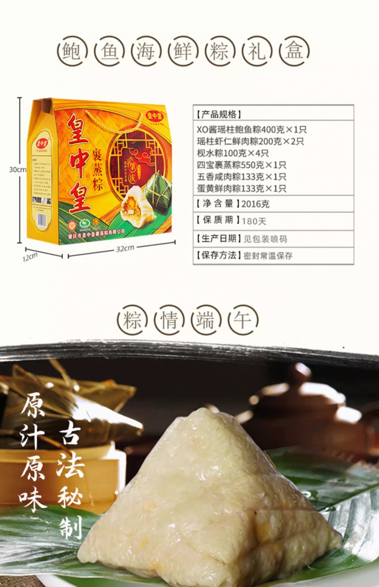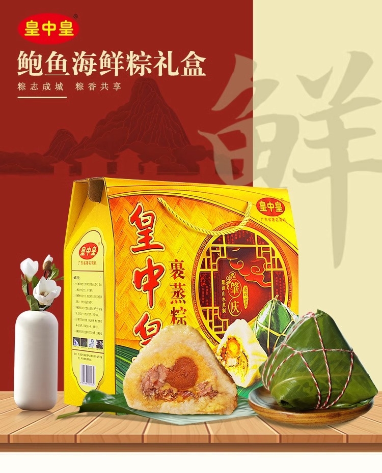 皇中皇 端午粽子礼盒 肇庆裹蒸粽子 鲍鱼海鲜蛋黄肉粽 广式粽子礼盒 鲍鱼海鲜粽礼盒2016g
